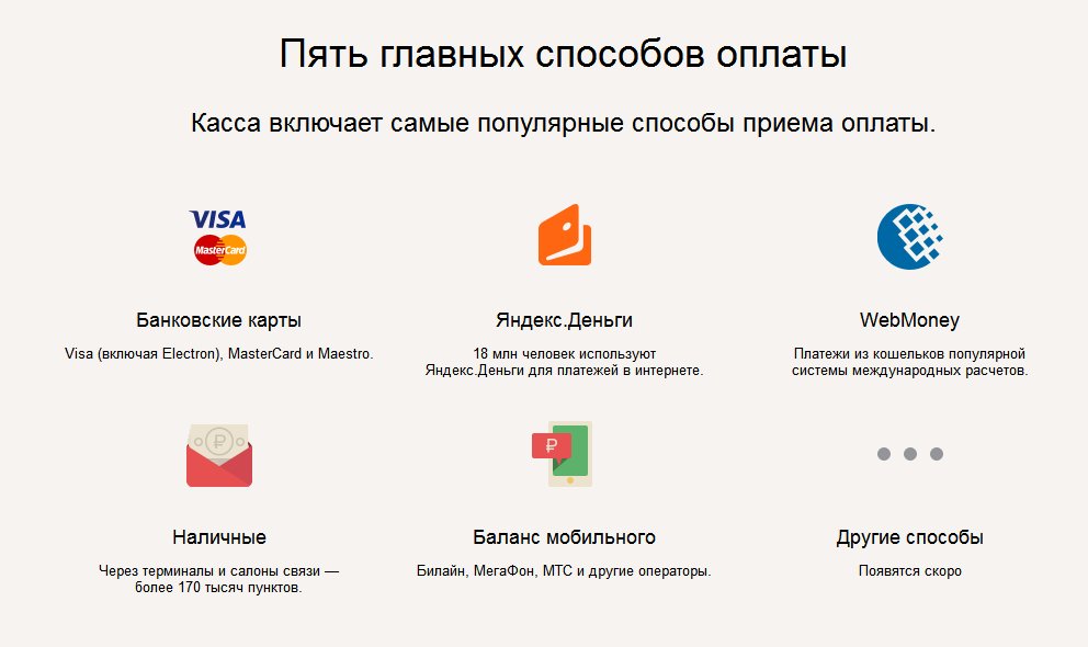The list of functionalities of Yandex.Kassa (for individuals they are also available) is constantly growing. Let's see what a payment aggregator can do today: